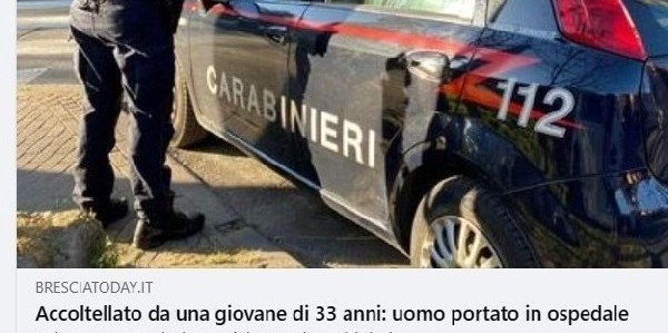 L’uomo è stato accoltellato all’addome ed è stato portato all’ospedale di Desenzano; non è in pericolo di vita. La donna è stata identificata e denunciata a piede libero dai carabinieri, intervenuti sul posto con una pattuglia. Ancora non si conoscono i motivi dell’aggressione.