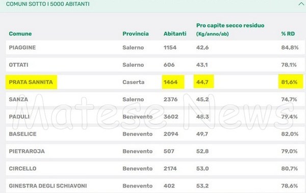 “Proseguiremo in questa politica di tutela ambientale e di rispetto del territorio, continuando a diffondere il messaggio educazionale soprattutto nelle scuole tra i più giovani e cercheremo di migliorare ulteriormente il traguardo già di per se gratificante ed importante, con la convinzione che uno dei più grandi risultati, in termini di soddisfazione o meriti) per gli Amministratori (per me per la mia Giunta e per tutti i Consiglieri) sia quello di riuscire a lasciare alle future generazioni un Paese all’avanguardia nella gestione dei rifiuti urbani – conclude la fascia tricolore di Prata Sannita.