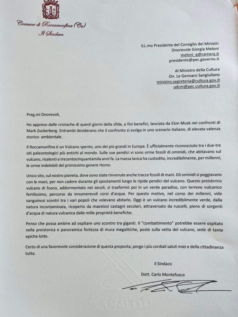 ROCCAMONFINA. Sfida a fini benefici tra Elon Musk e Mark Zuckerberg: il sindaco Montefusco la propone nella cittadina roccana.